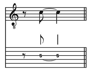 • How to perform: The first note is struck and held for the length of the second note, but the second note is not struck.