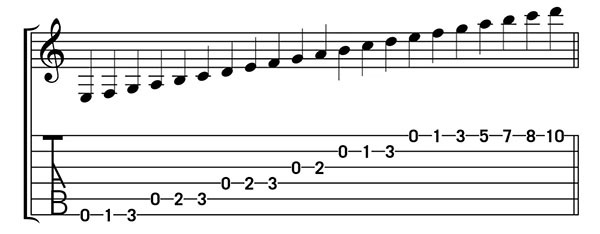 The major notes shown musically and in TABS